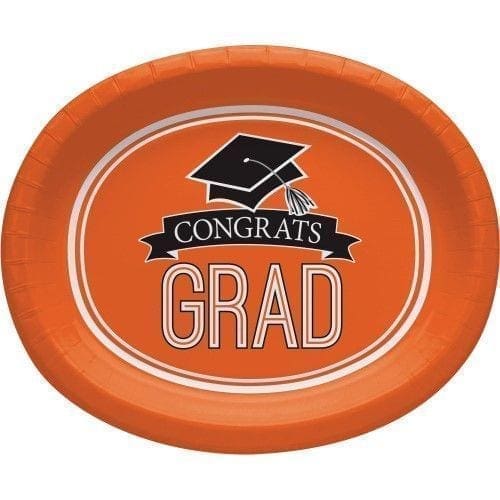 Serve tasty meals on tableware that matches the graduate’s high school or college school colors with the School Spirit Orange Oval Plates. Perfect for handling larger meals and buffets, these Sturdy Style paper plates will show your school spirit and provide a nice touch to the end of a long journey. The plates come in packs of 8 and can be coordinated with other School Spirit party supplies to celebrate the hard-working graduate’s accomplishment. Gender: unisex. Pattern: Letters.