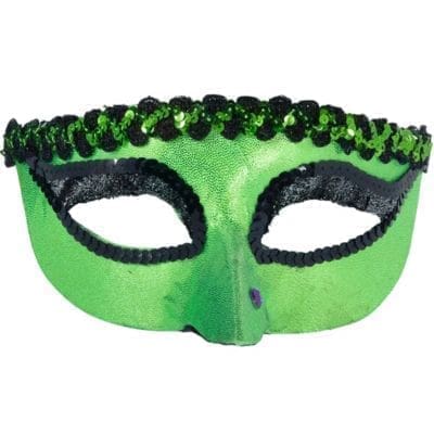 Be a mysterious and sexy enchantress with a Green Witch Masquerade Mask. This Venetian-style eye mask has a sparkly green finish with black sequins around the eyeholes. A purple gemstone wart is attached to the elongated nose of the mask because every wicked witch needs a wart! An elastic band wraps around your head to keep the mask in place while you cast your spells. Green Witch Masquerade Mask product details: 6 1-2in wide x 3 1-2in tall Felt and plastic Attached elastic One size fits most teens and adults Intended for adult use only.