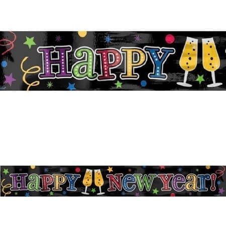 Happy New Year Foil Party Banner 9 ft Wall Decoration.