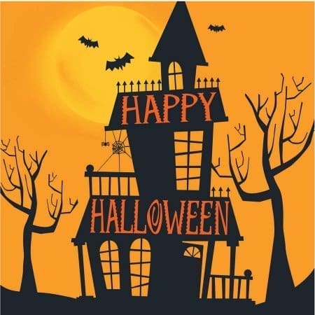 Whether hosting a costume party or just serving the neighborhood kids, bring a fun and festive feel to a holiday table setting with the Haunted Halloween Beverage Napkins. This pattern features an eerie scenery of a haunted mansion with a “Happy Halloween” caption. These party napkins are sold in packs of 16, and they coordinate well with other pieces from the spooktacular Haunted Halloween Collection. With crisp and vivid colors, these are a cute choice for a child’s classroom celebration. While they’re made for drinks, you can also use them to serve finger foods, chips, pretzels and nuts. Pair them with themed plates, table covers and other decorations for a festive October celebration.