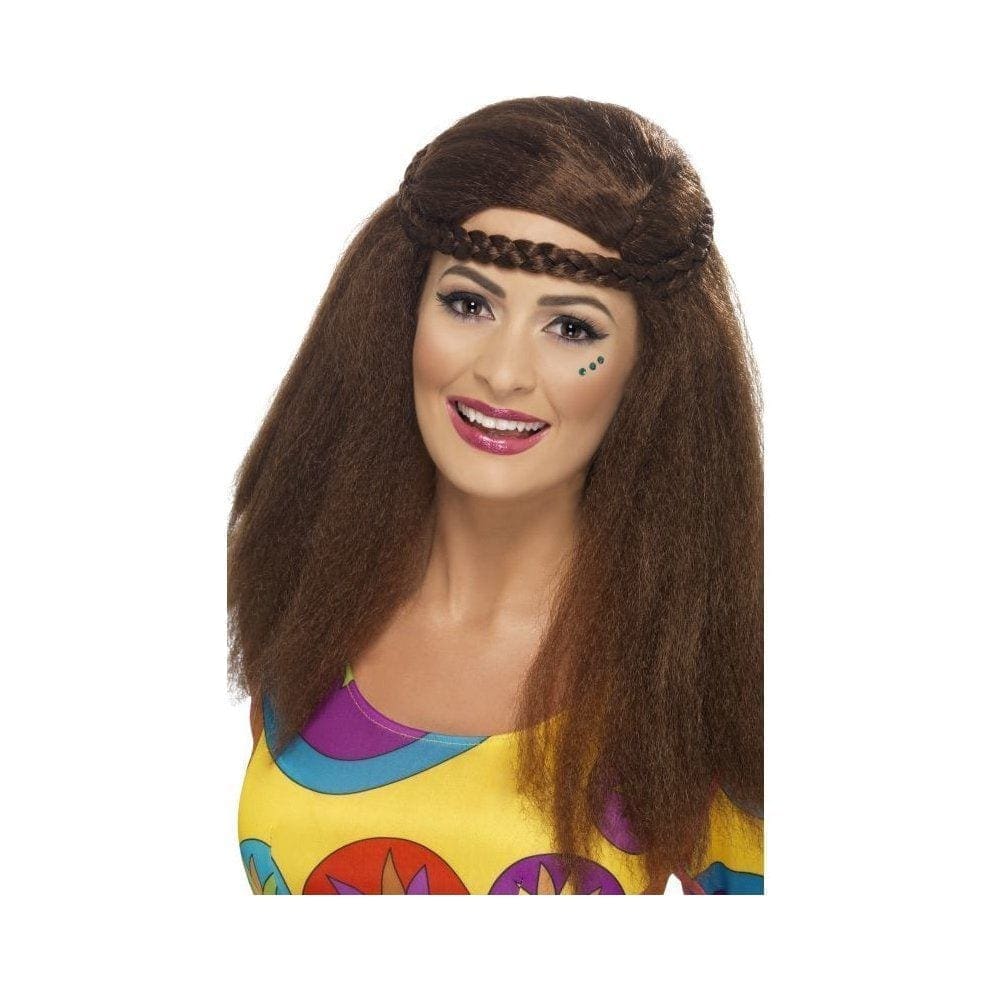 Get ready for some ‘Flower Power’ with our long brown afro style wig complete with plaited headband!