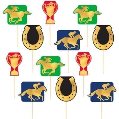 Create a winner’s circle of race-day treats by decorating them with Horse Race Cupcake Picks! Each wooden toothpick comes with one of four design including horses horseshoes jockeys and trophies. Horse Race Cupcake Picks product details: 24 per package 6 each of 4 designs Approximately 1 1-2in wide x 3 1-2in tall.