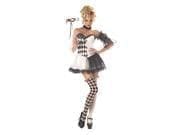 Would you like to be the belle of the ball? Well, try on this festive frock for size. Our Le Belle Harlequin Womens Harlequin Costume comes with a flirty black and white mini-dress; with attached crinoline, clear straps, black lace trim and glittered red heart accents. It also has matching thigh highs with cute red bows, detached black and white sleeves, a sassy black ruffled collar, and even a hand-held eye mask with feather and ribbon accents! You’re sure to put a grin on everyone’s face in this enticing Le Belle Harlequin Womens Harlequin Costume! Zipper