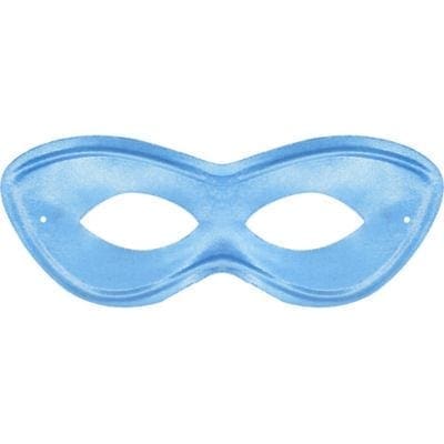 Conceal your identity and show true spirit with a Light Blue Domino Mask! This metallic light blue eye mask is made of stiff fabric and covers only the eyes. The black elastic band stretches for a comfortable fit. Wear it for an easy superhero costume or for a unique way to show some love for your team or school. Light Blue Domino Mask product details: 7 1-2in wide x 3in tall Polysatin Attached elastic One size fits most teens and adults ⚠ CAUTION: Use with proper adult supervision. Do not use when unobscured vision is needed. ⚠ WARNING: Not suitable for children under 3 years. Long cord strangulation hazard. Use with adult supervision.