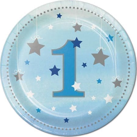 The little prince will be dining in style on his first birthday with the Little Star Boy 1st Birthday Dessert Plates. Measuring seven-inch round, the Sturdy Style paper plates display a giant blue “1” in the center with stars in the background. The snack plate comes in packages of eight and can be coordinated with other Little Star Boy party supplies.