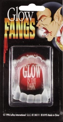 Every vampire needs a set of fangs, and these ones even glow in the dark!Featuring:Every vampire needs a set of fangs, and these ones even glow in the dark!Glow in the DarkVampire AccessoryHalloween HorrorIncludes:(1) Glow in the Dark Fangs.