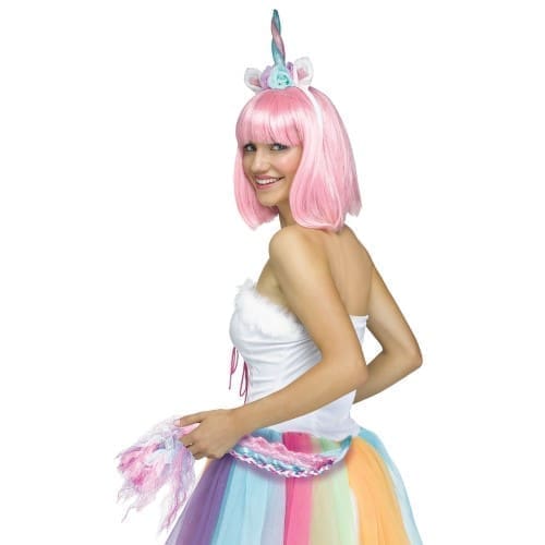 Magic unicorn kitIncludes: headband with horn and ears, and tailColor: multi-coloredSize: one size fits mostCharacter headpiece on top of a plastic headband and tail.