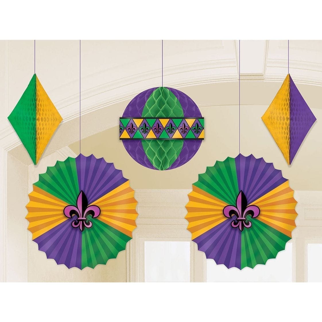 Mardi Gras Honeycomb & Fan Decorations