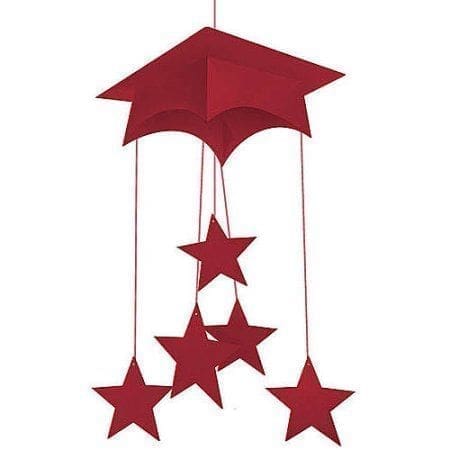 Mortarboard Hanging Mobile, Red: Hanging decoration is made of paper and foilMeasures 15″ long from the top of the mortarboard to the bottom of the starsUse this hanging mobile to celebrate your accomplishment in style