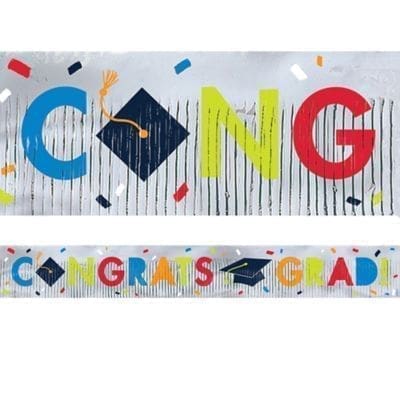Navy Awesome Congrats Graduation Fringed Banner Decorations