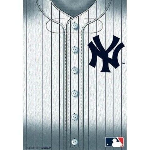 Make sure every guest leaves with a bag full of baseball spirit! Officially licensed New York Yankees Favor Bags feature a one-sided graphic print of a white and navy blue pinstripe Yankees jersey with the team logo. Hand out these Yankees goodie bags at your next baseball-themed party. New York Yankees Favor Bags product details: 8 per package 6 1-2in wide x 9 1-2in tall Plastic Officially licensed ©MLB product.