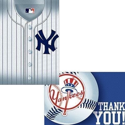 From the first pitch to the bottom of the ninth your baseball-themed party will be a big hit when you start with officially licensed New York Yankees Invitations and end with New York Yankees Thank You Notes! The jersey-shaped invitations open from the middle and read Step up to the plate it’s party time! There’s plenty of room inside for filling in your party details. The thank you postcards have the team’s logo front and center. New York Yankees Invitations & Thank You Notes for 8 include: 8 folded invitations 3 3-4in wide x 5 1-2in tall 8 envelopes 8 thank you postcards 4in wide x 6in tall Officially licensed ©MLB product.