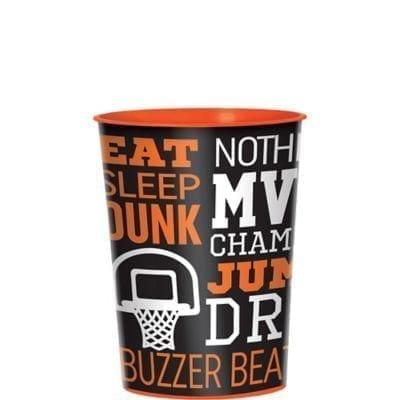 Create a winning party with these Nothin’ But Net Favor Cups. This favor cup features a wraparound print in black with headlines like Nothin’ But Net Slam Dunk! and Eat Sleep Dunk in orange and white. Fill this reusable cup with candy and party favors or cool beverages at your next sports-themed party. Nothin’ But Net Favor Cup product details: 16oz capacity Reusable.
