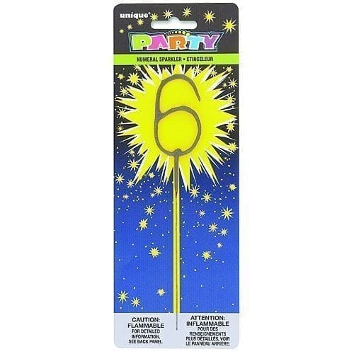 Let the sparks fly to celebrate birthdays anniversaries or any other special occasion with a Number 6 Sparkler! This sparkler is designed to look like the number 6 with a metal wire stick attached to it. You can use this sparkler by itself or combine it with other number sparklers as a decorative cake topper for birthdays. Alternatively you can simply light the sparkler outside to watch it light up the night. Commemorate any special event in a flashy way with this sparkler! Number 6 Sparkler product details: 1 1-2in wide x 7in tall Metal Suitable for outdoor use only ? WARNING: FLAMMABLE. Emits showers of sparks. Not for children under 8 years.