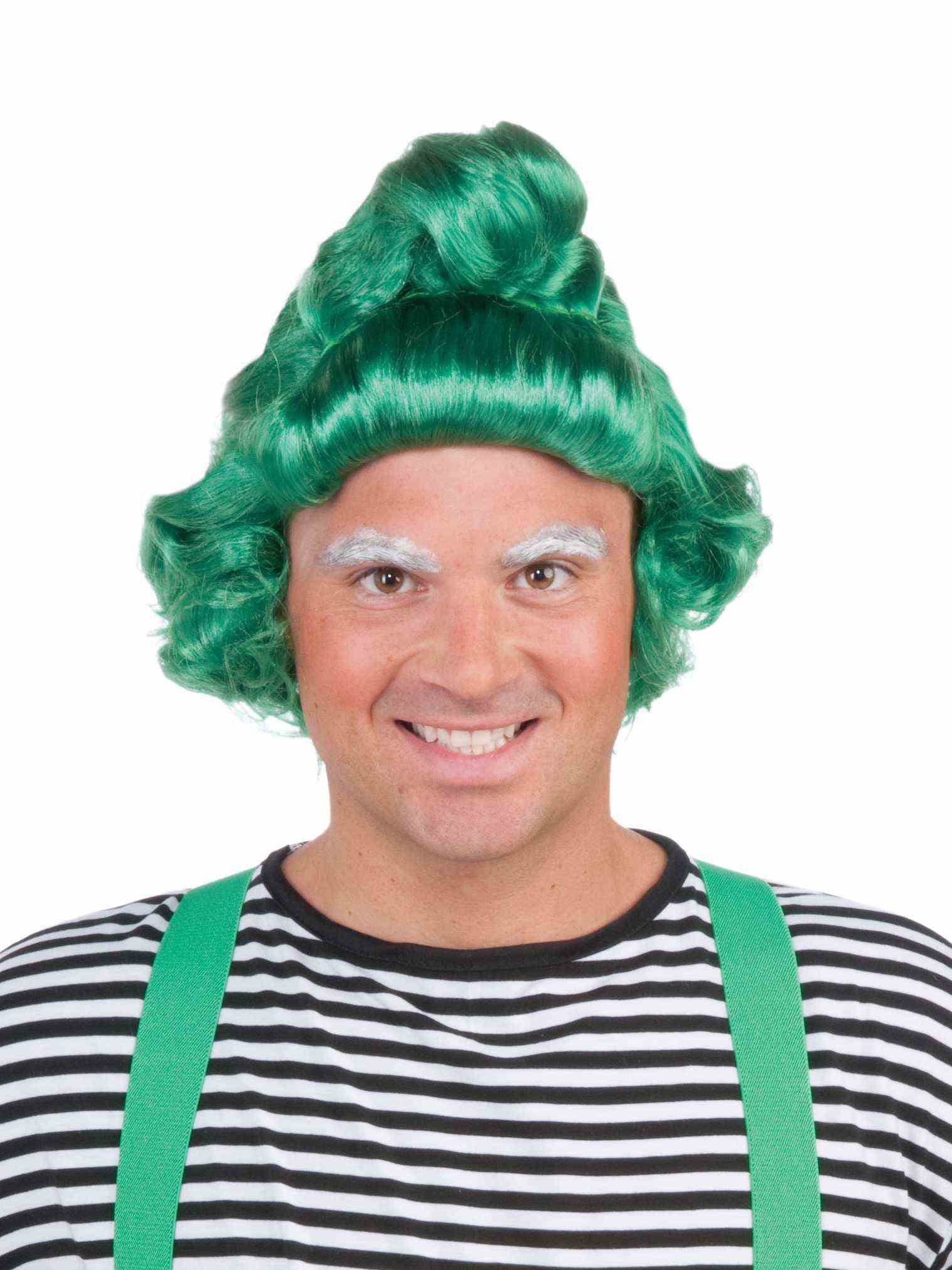 If you are a fan of candy, singing in rhymes, and rolling blueberry children out the door, then this wig is for you! This unique green wig has bright green synthetic hair with bangs and a top section that is pulled up and curled under. Comfortable mesh lining inside. – One size fits most adults and teens.