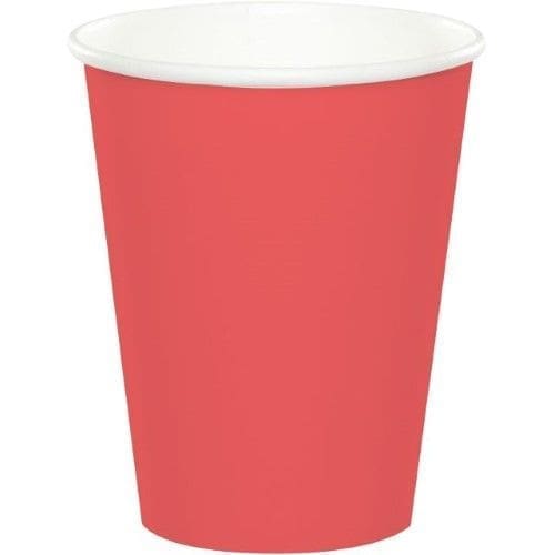 This package contains eight hot and cold cups for parties! Each is approximately 3-3/4 by 3 inches and hold approximately 9oz.