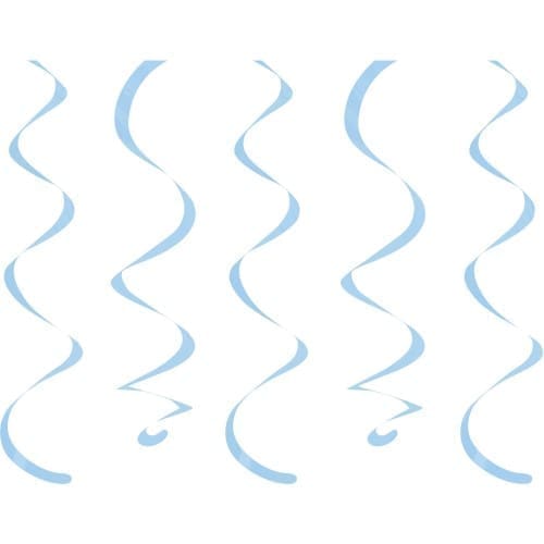 Celebrate in style by hanging these pretty Pastel Blue Swirl Decorations! These soft-hued blue plastic hanging decorations are easy to hang from ceilings or light fixtures at your next birthday shower or other special event. Pastel Blue Swirl Decorations product details: 10 swirls 18in long Attached hooks.