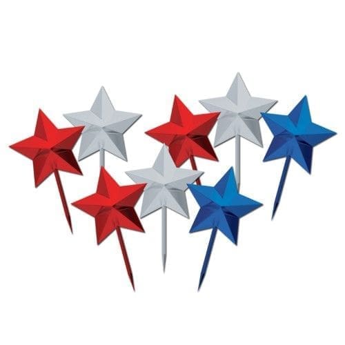 Features: -Set includes 50 star picks. Color: -Red/Silver/Blue. Material: -Plastic. Product Type: -Cake Topper. Material Details: -Acrylic. Holiday / Occasion: -Independence Day. Dimensions: Overall Height – Top to Bottom: -3″. Overall Width – Side to Side: -0.5″. Overall Depth – Front to Back: -0.5″. Overall Product Weight: -0.05 lbs.