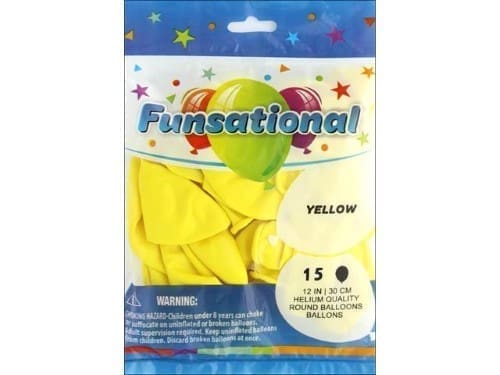 PNL Funsational Deco Balloon 12″ 15pc Yellow.