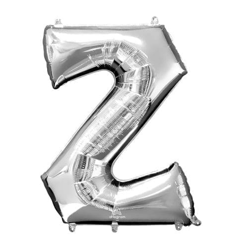 A 34 Silver Letter Z Balloon is perfect for adding a personalized touch to your next event! Combine this Silver letter balloon with other letters for a custom message at a graduation birthday baby shower or wedding. The metallic finish of this foil balloon makes for an eye-catching decoration. Silver letter balloons also make a trendy photo booth background at your event. 34 Silver Letter Z Balloon product details: 25in wide x 33in tall Foil Self-sealing Reusable Balloons arrive uninflated. Helium inflation available at Party City stores. No additional cost. Show of receipt required. No maximum quantity. Always dispose of balloons properly. Do not release balloons into air. California residents will be required to purchase a balloon weight with any foil balloon inflation at Party City stores if they do not already have one.