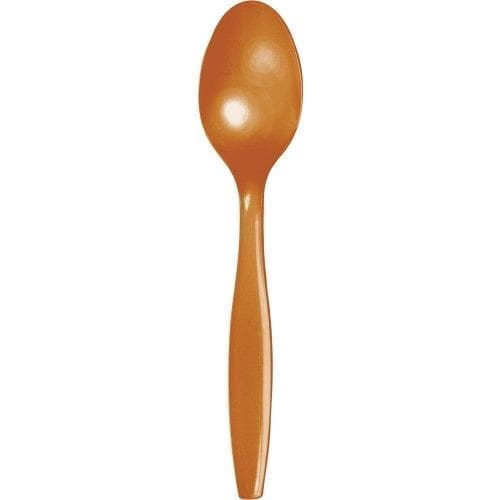An elegant complement to a variety of themed party ensembles, our Pumpkin Spice Orange Plastic Spoons are durable enough to handle the needs of your event. Constructed of premium strength plastic, the spoons offer eye-catching appeal with the ease of disposability. Sold 24 per package, the spoons bold and neutral tone makes them ideal for use at any number of year round occasions.