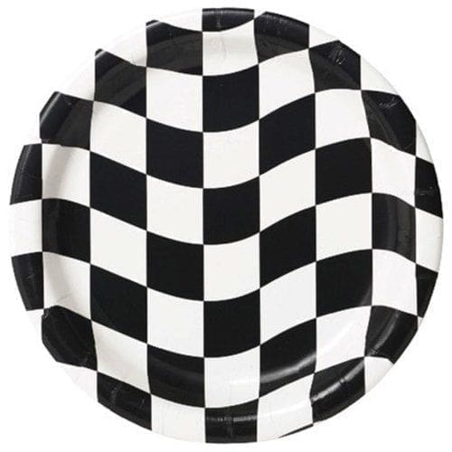 Rev up your party with a classic racing design. Patterned paper dessert plates are 6.75″ diameter, coated for durability & no mess clean up and come 8 plates to a package. A great size for finger foods, appetizers and scrumptious party bites, this classic design will be a big hit for any age or gender. Traditional black and white checkered pattern fits all kinds of party themes from retro 1950’s sock hops to super fast nascar racing and everything in between. Check out the entire selection of Black & White Check themed party supplies from Creative Converting for your next birthday celebration, retirement, graduation or backyard summer bbq.