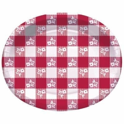 Red and White Checked Design Floral Decorative Printed Oval Platter 12″