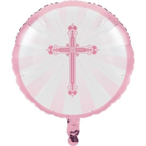 Add a splash of color to your decorations with this Religious Blessings Pink Mylar Balloon. It provides a simple and elegant element for baptismal celebrations or other events. This balloon features a pink cross in the center with rays extending from it. It is available in other colorful themes (sold separately).