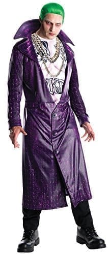 HA! HA! HAAAAAA! Transform yourself into the Clown Prince of Crime this Halloween with a Joker costume that looks like it?s ready to take on Amanda Waller and her trumped up thugs. Embrace your inner villain by sporting the demented looking Suicide Squad: Deluxe Joker Adult Costume. Featuring a tattooed bare chest top with attached leather purple jacket you?ll look like a clown on a mission in this cinematic costume. Show Harley Mr. J is back in town with a costume that proves once and for all that Jokers are wild. Deluxe costume jacket with attached shirt, Note costumes are sized differently than apparel; review the Rubie’s size chart when selecting a size and consider buying the next size up if you are at the top of a size range, Officially licensed Suicide Squad Joker costume, buy with confidence direct from Amazon, a trademark of DC Comics, Wear with your own pants, Create your own Squad with costumes and accessories for all the movie characters