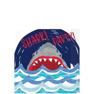 Get set for any splashes with our Shark Party Paper Beverage Napkins. Decorated with a hungry cartoon shark, this set of 16 drink napkins is sure to take your kid’s shark birthday party to whole new depths. These 2-ply paper napkins are fin-tastic for holding drinks, so keep the whole stack piled up on top of your table for guests to take. For more great ways to make waves, decorate your party with the rest of our budget-friendly shark party supplies.