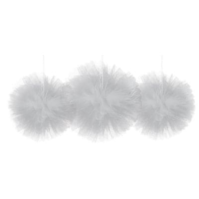 Silver Tulle Large Fluffy Pom Pom Decorations (3ct).