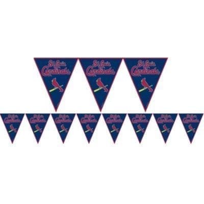 Lightweight plastic*Measures 12’*Pennant banner features team logo, hang around wherever you wish to decorate or celebrate your favorite team*Matches our other items in the “St. Louis Cardinals Major League Baseball” collection. Features the St. Louis Cardinals Team Logo and Color, Made of lightweight plastic, this banner is perfect for indoor or outdoor parties, Banner measures 12′ long, Item is an officially licensed ©MLB product