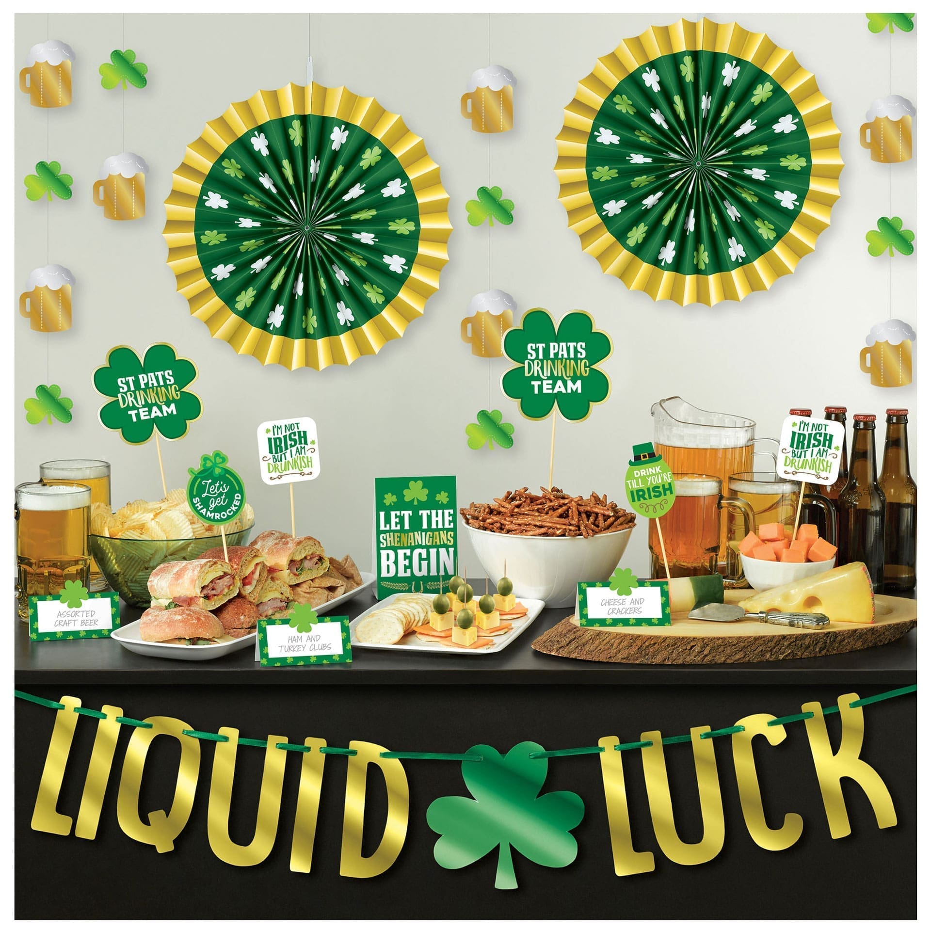 Let the shenanigans begin with our St. Patrick’s Day Bar Decorating Kit! This green and gold, paper and foil decorating kit includes everything you need for a festive Saint Patrick’s Day celebration. Easy assembly The St. Patrick’s Day Bar Decorating Kit includes: 1 – 6″ Table Tent Card 8 – 2″ Table Tent Cards 4 – 7 7/10″ Paper Picks 3 – 12 1/2″ Paper Picks 4 – 72″ String Decorations 1 – 9″ Letter Banner 2 – 14 1/2″ Fan Decorations.