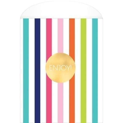 Fill Sweet Treats Treat Bags with yummy snacks for the whole party! These paper treat bags read Enjoy! across the front on a background of colorful vertical stripes. The vibrant colors make for a chic display that guests will be excited to get their hands on. Send everyone at your baby shower or birthday party home with a bag full of goodies! Sweet Treats Treat Bags product details: 12 per package 5 3-4in wide x 8 1-2in tall.