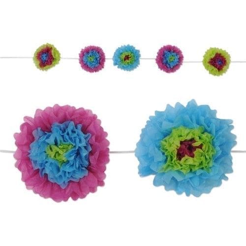 Tissue Flower Garland – Blue Lime Green Purple Case of 12