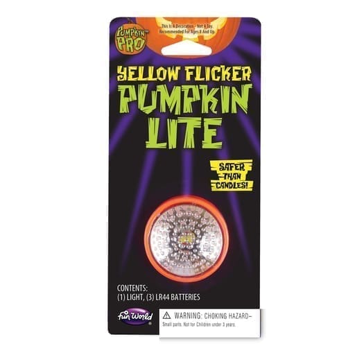 Totally Ghoul Totally Ghoul Pumpkin Lights- Yellow FlickerLite Up your pumpkin with the Color Change Pumpkin Lite.Pumpkin Lights-Yellow Flicker , Color Change Effect. Includes 3 LR44 batteries. Safer Than candles.Lite Up your pumpkin with the Color Change Pumpkin Lite.