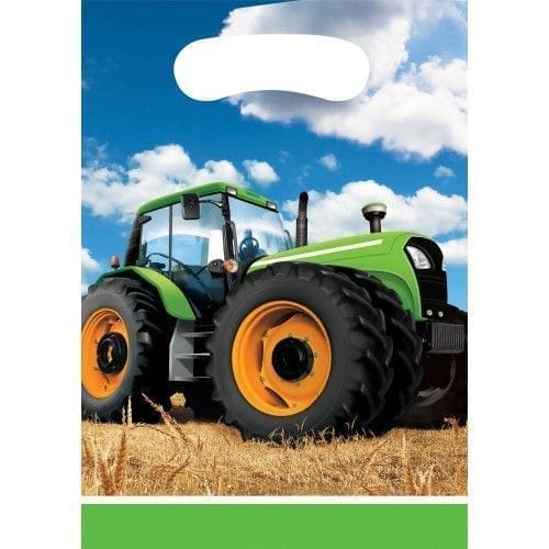 Thank your tractor-loving tykes that attended the party by stuffing treats and surprises in the Tractor Time Favor Bags. These plastic loot bags measure nine inches by 6.5 inches and feature a detailed image of a green tractor sitting in a field. This treat bag is sold in packs of eight and coordinates smoothly with the other party favors in the Tractor Time collection.