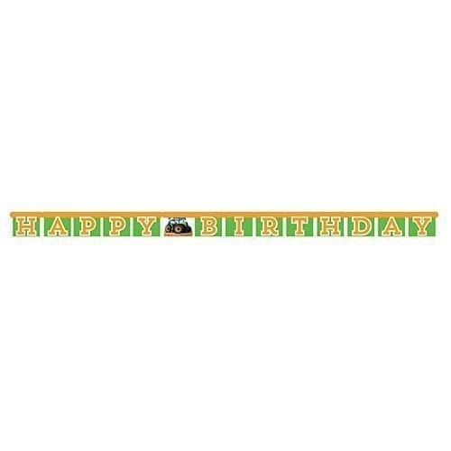 Make a big statement at the birthday party with the Tractor Time Jointed Banner. This festive hanging decoration measures 5.5-feet long when assembled and features a tractor theme “Happy Birthday” message. This birthday banner is sold individually and can be hung across your party area, along the wall behind the main table or across the patio or front porch.