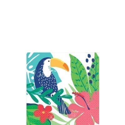 Transform the table at your summer party into a tropical island with Tropical Jungle Beverage Napkins! The small paper napkins feature a colorful toucan flowers and palm leaves. Accentuate the rest of your colorful tropical-themed tableware with these napkins. Clean up messy spills at your tropical summer party with Tropical Jungle Beverage Napkins! Tropical Jungle Beverage Napkins product details: 36 per package 5in x 5in when folded Made in the USA.