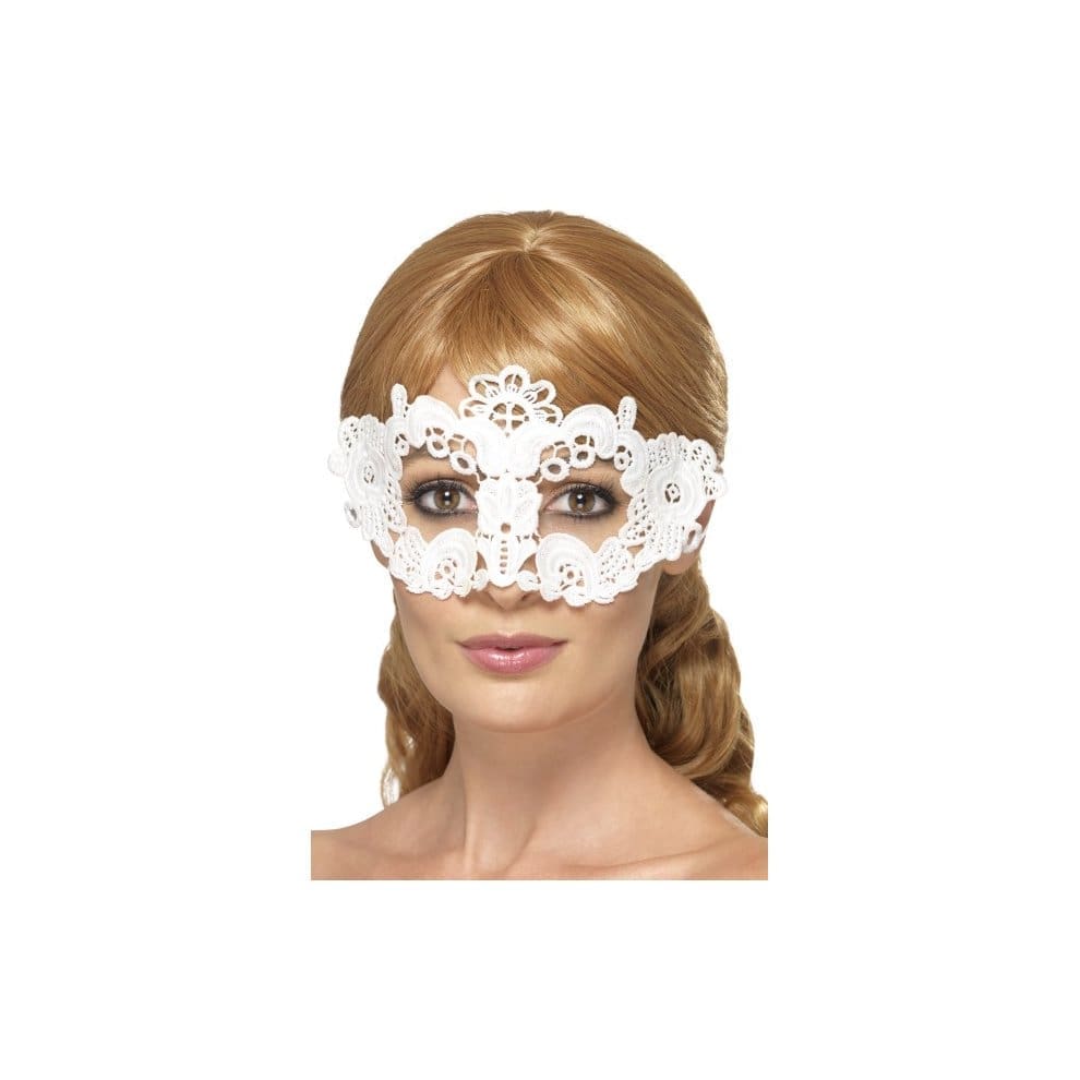 White Embroidered Lace Filigree Floral Eye Mask – Lace Eyemask Ball White Embroidered Filigree Masquerade Masked Floral Venetian Fancy Dress