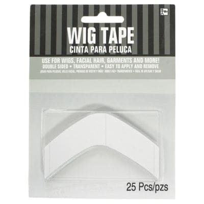 Stick it to horrible hair days with this Wig Tape! This wig tape features 25 pieces of curved strips of non-gummy double-sided adhesive. Place these pieces of tape at strategic points to prevent wig slippage. This multipurpose Wig Tape can also be used on clothing instead of pins for minor alterations or for on-the-spot wardrobe malfunctions. Wig Tape product details: 25 per package 4in wide Plastic and synthetic rubber Self-adhesive Intended for adult use only.