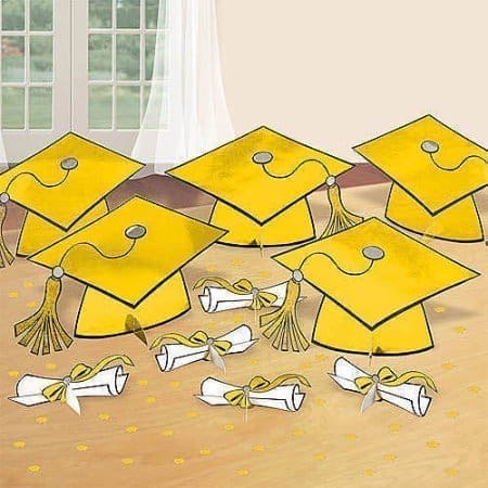 Go for a vibrant look on your open house tables with this Yellow Graduation Table Decorating Kit which contains everything you need to make your party tables pop with color! Each kit contains: 5 – 15″ diameter graduation caps 5 – 7″ long diplomas 1 – 1/2 ounce bag of metallic foil graduation cap confetti Give your tables style with the addition of our Yellow Graduation Table Decorating Kit.