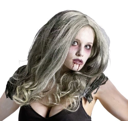 Exist among the living or the dead and dance with the spirits when you transform yourself with this adult women;s gray Zombie Queen wig.Material: Synthetic fibersCare: Hand wash with cool water and mild shampoo; air dryImported – Wigs – – Spirit Halloween.